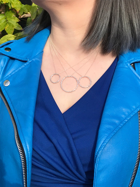Sterling Silver Iota Circle Necklaces with Granulation in Varying Sizes
