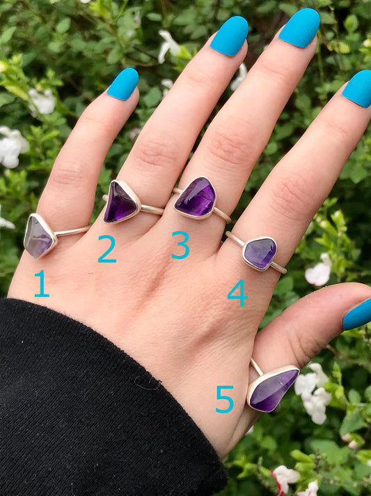 Sterling Silver and Tumbled Gemstone Rings: Amethyst, Garnet, Tiger's Eye, Carnelian, Black Tourmaline, Seraphinite, Red Jasper, Rose Quartz