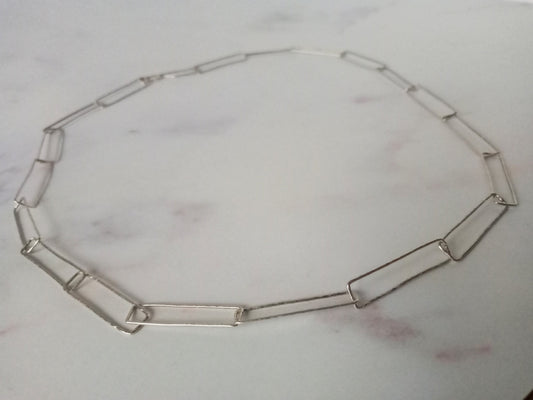 Handmade Sterling Silver Hammered Rectangular Chain Necklace