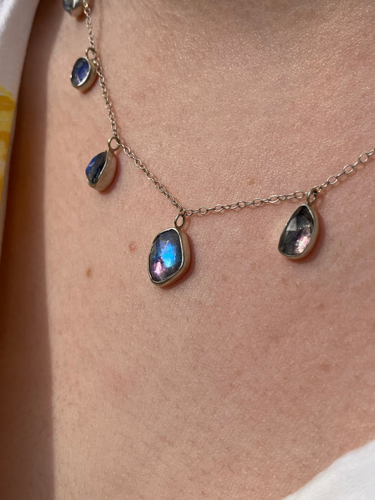 Rainbow Moonstone and Sterling Silver Necklace with Sterling Silver Chain