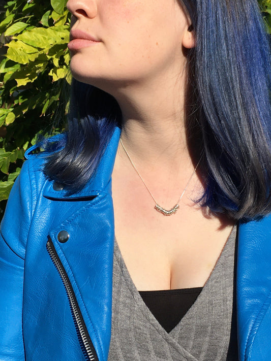 Fluorite and Sterling Silver Spiked Pendant Necklace