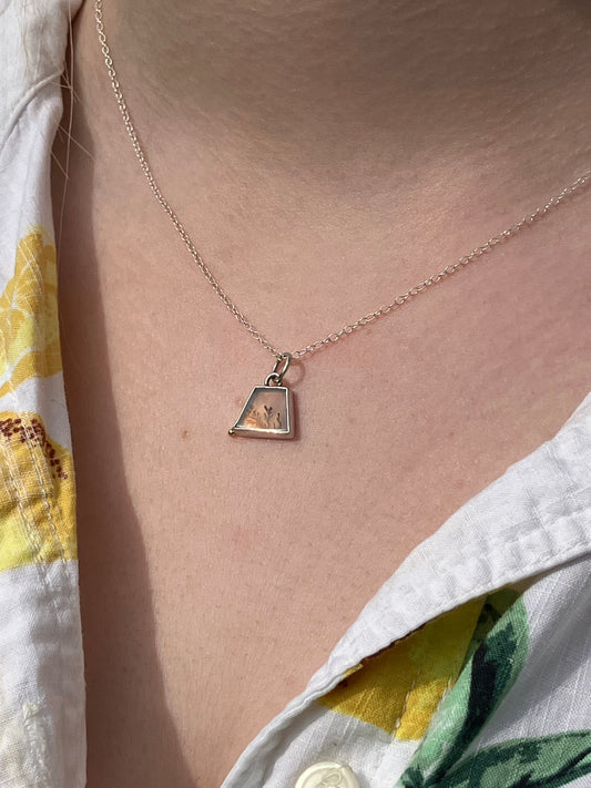 Dendritic Agate and Sterling Silver Pendant Necklace with 18ct Gold Granule on Sterling Silver Chain