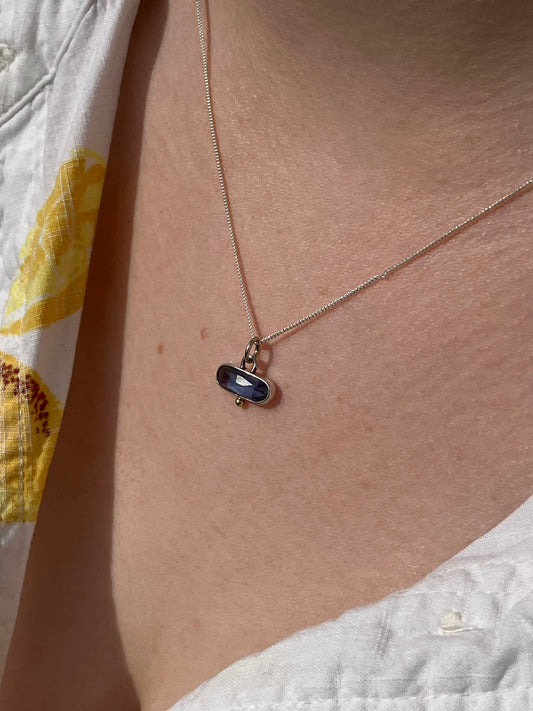 Blue Kyanite and Sterling Silver Pendant Necklaces with 18ct Gold Granules on Sterling Silver Chains