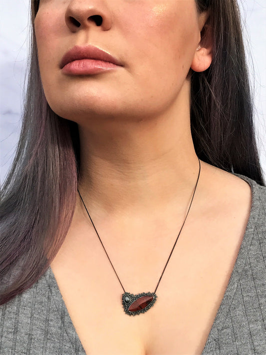 Sekhmet Necklace - Brecciated Jasper and Hematite Sterling Silver Granulation Necklace with 9ct Gold Details