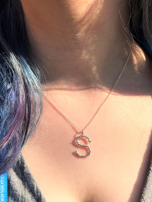 Sterling Silver Alphabet Initial Name Pendant Necklaces with Granulation