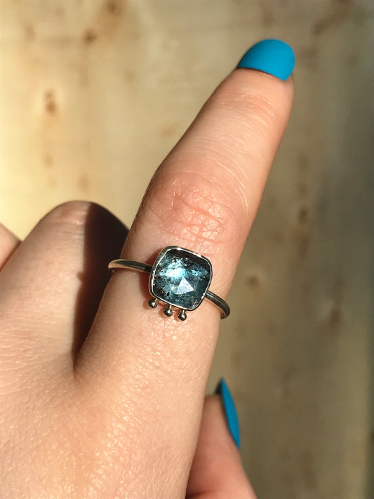 Teal Moss Kyanite, 9ct Gold and Sterling Silver Ring - UK Size L