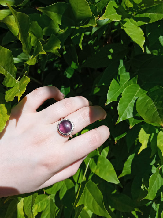 The Susan Ring - Fluorite and Sterling Silver Ring with Halo of Granulation