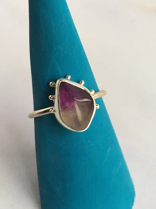 Purple Haze Ring - Amethyst and Sterling Silver Ring with Granulation - UK Size O