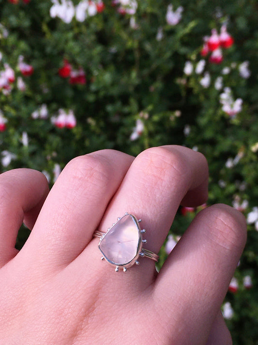 Rose Quartz and Sterling Silver Statement Stacking Ring with Granulation Details and Split Band