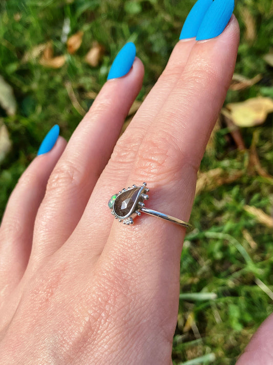 Sapphire, Opal and Sterling Silver Granulation Ring - UK Size P