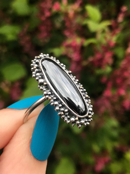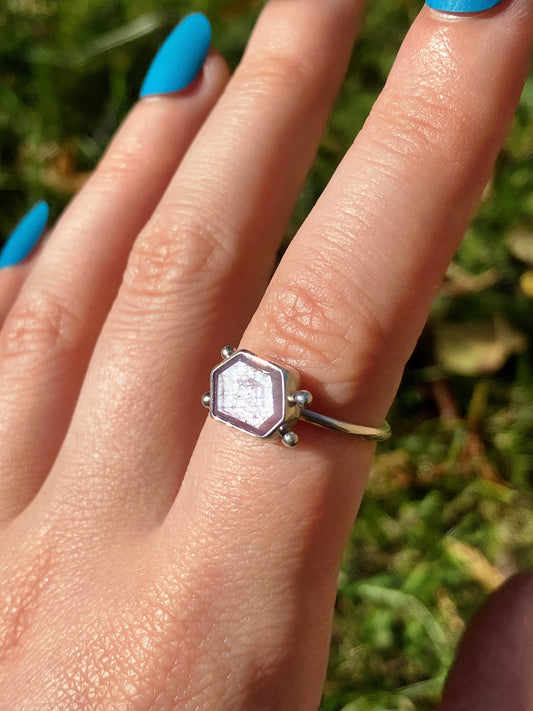 Mother of Pearl and Sterling Silver Granulation Ring - UK Size L