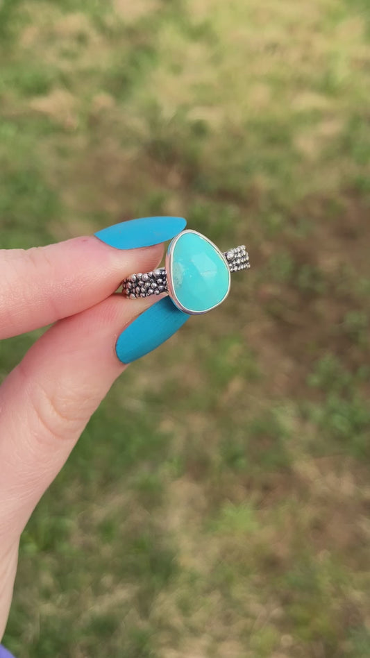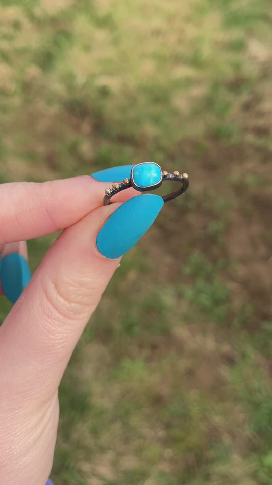 Turquoise and Recycled Sterling Silver Granulation Ring - UK Size P1/2 /US Size 8