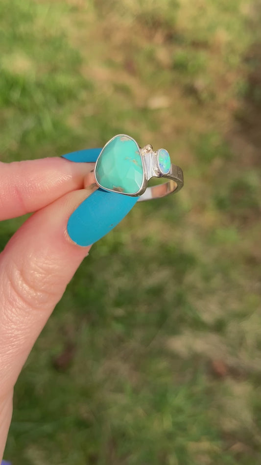 Turquoise, Opal and Sterling Silver Ring - UK Size S/US Size 9.5