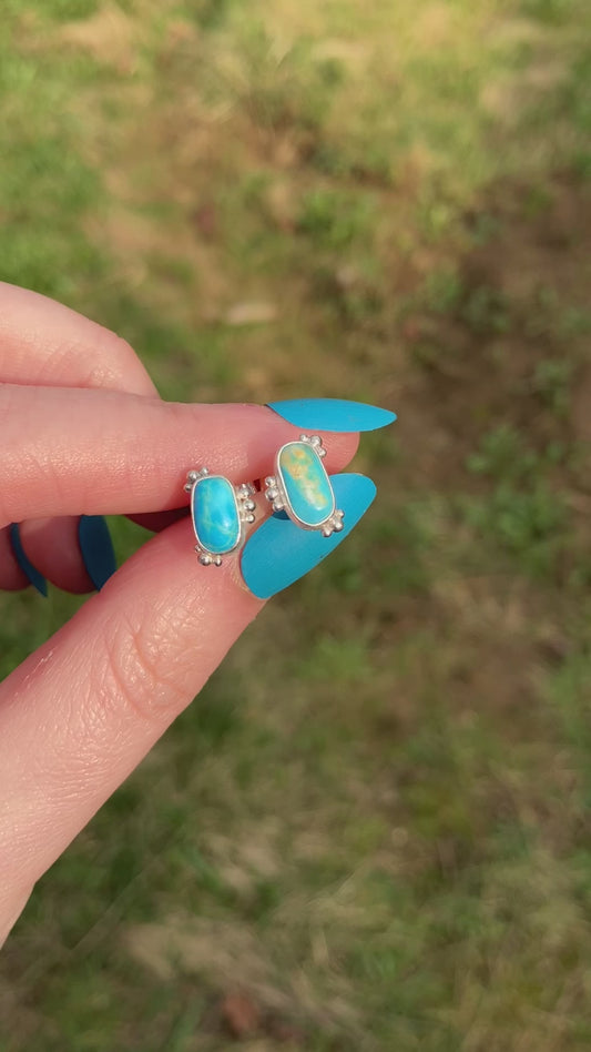 Asymmetrical Turquoise and Sterling Silver Stud Earrings with Granulation Detailing