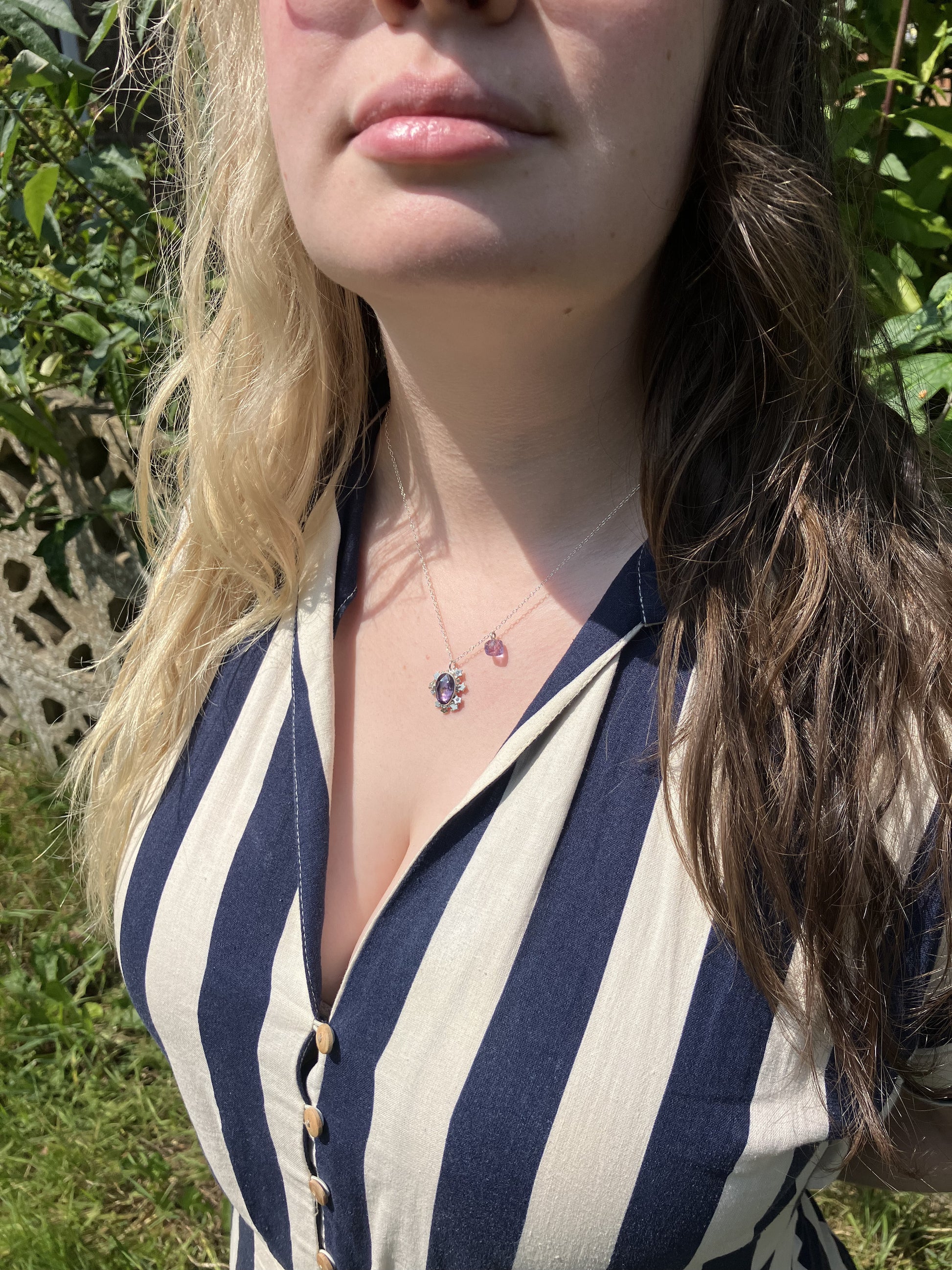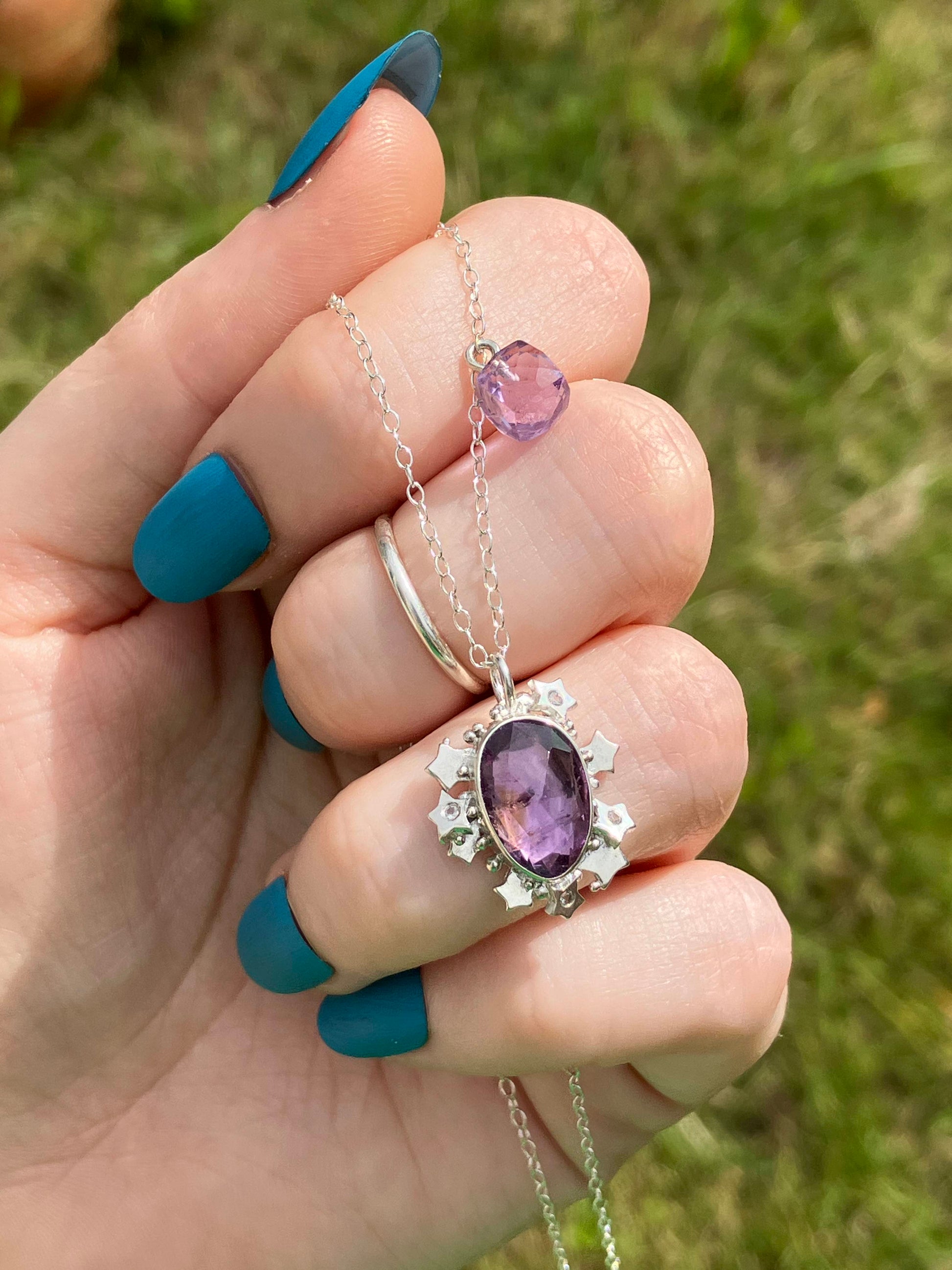 Amethyst, White Topaz and Sterling Silver Pendant Necklace on Sterling Silver Chain with Amethyst Detail