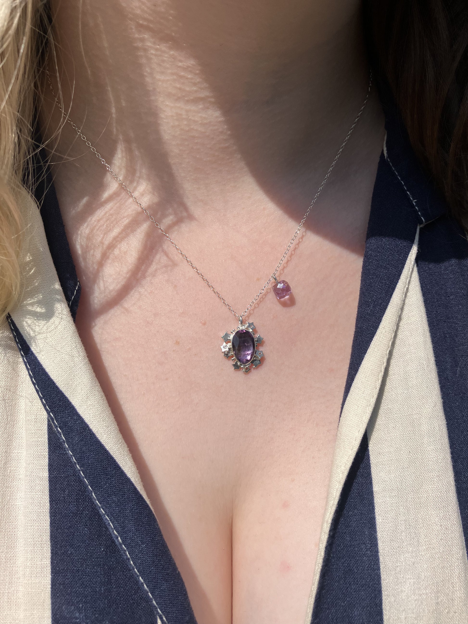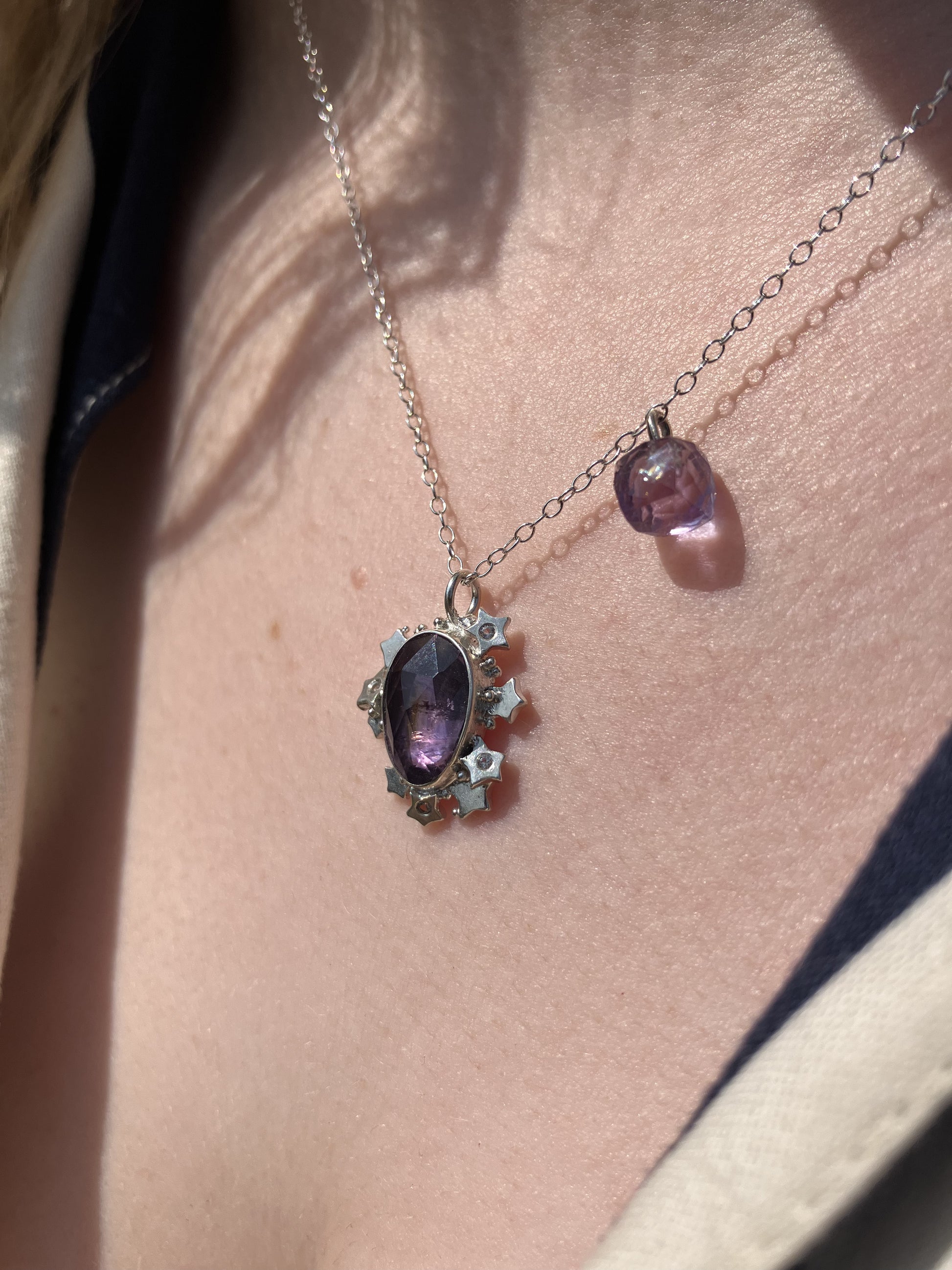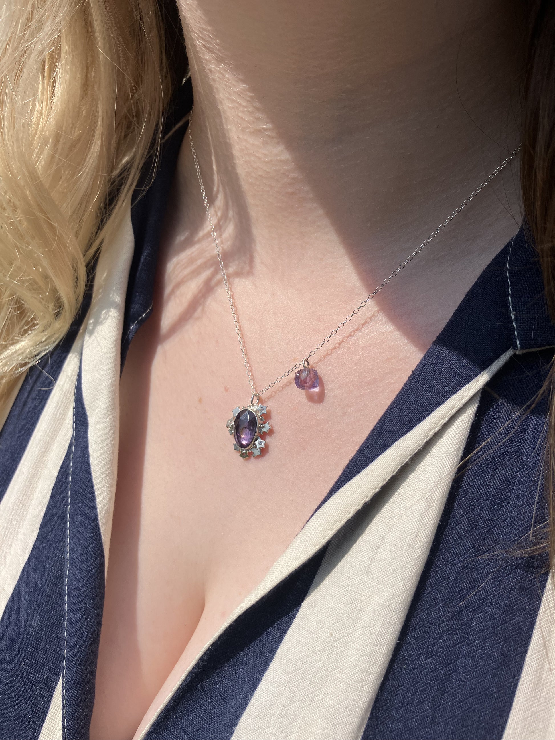 Please note, Amethyst pendant with stars can be removed from the chain, but the Amethyst cube cannot be removed from the chain.