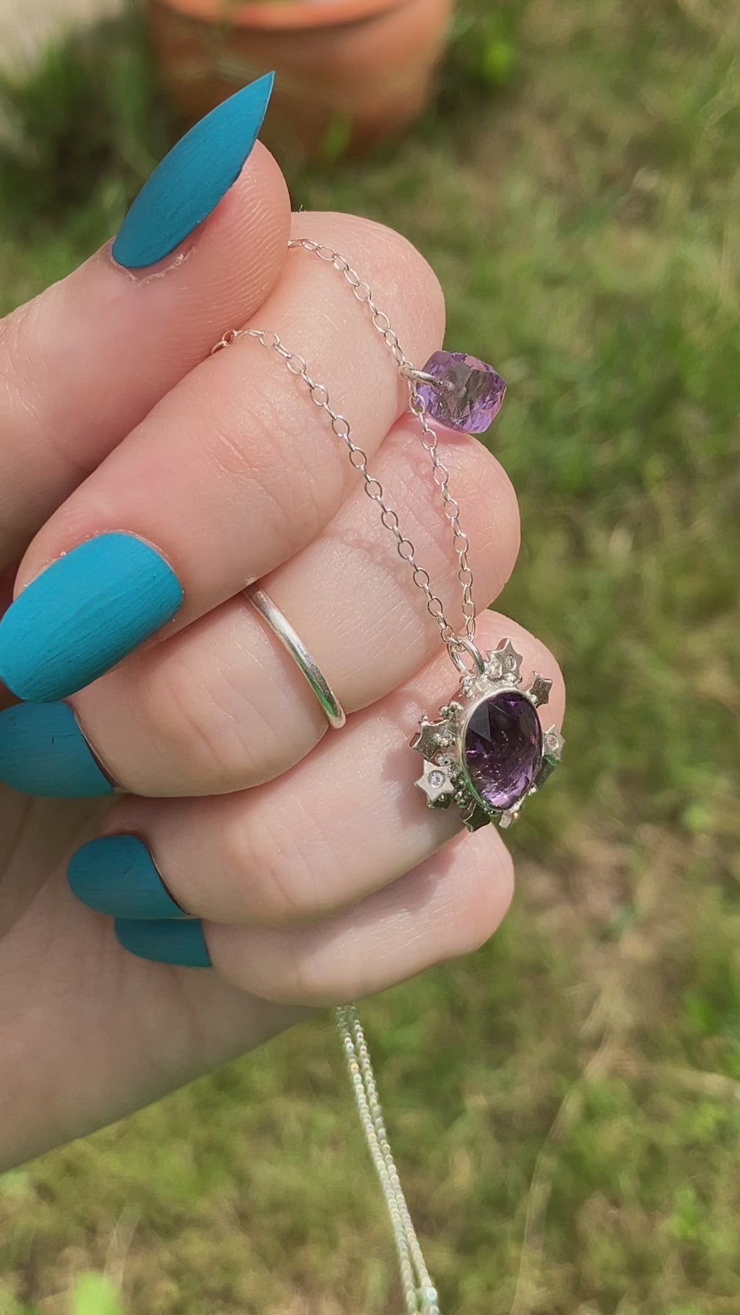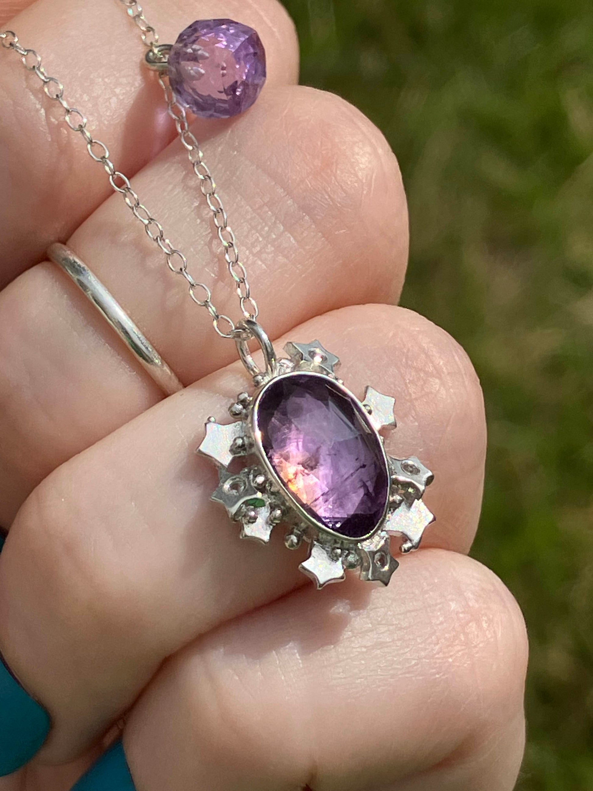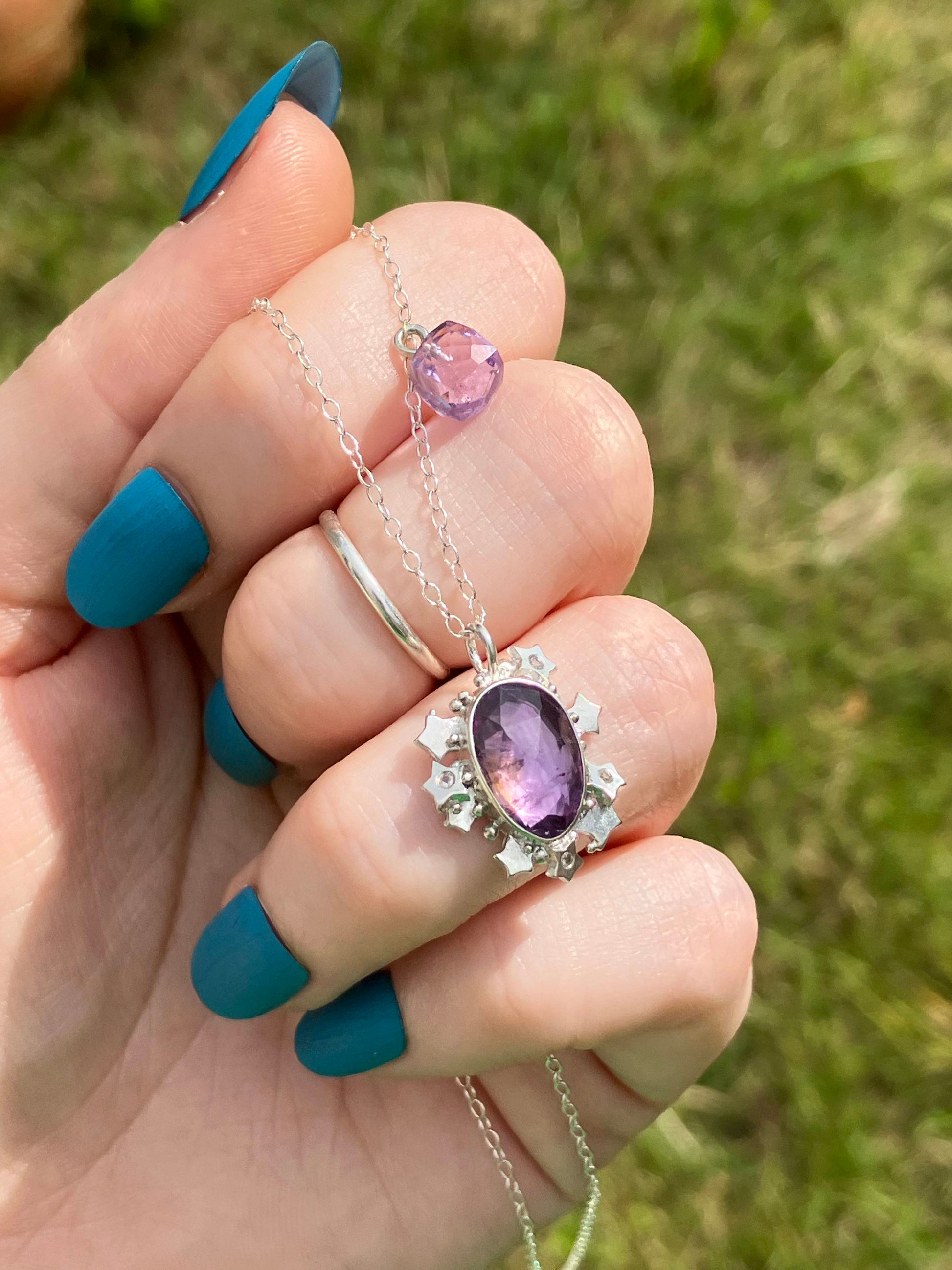 Please note, Amethyst pendant with stars can be removed from the chain, but the Amethyst cube cannot be removed from the chain.