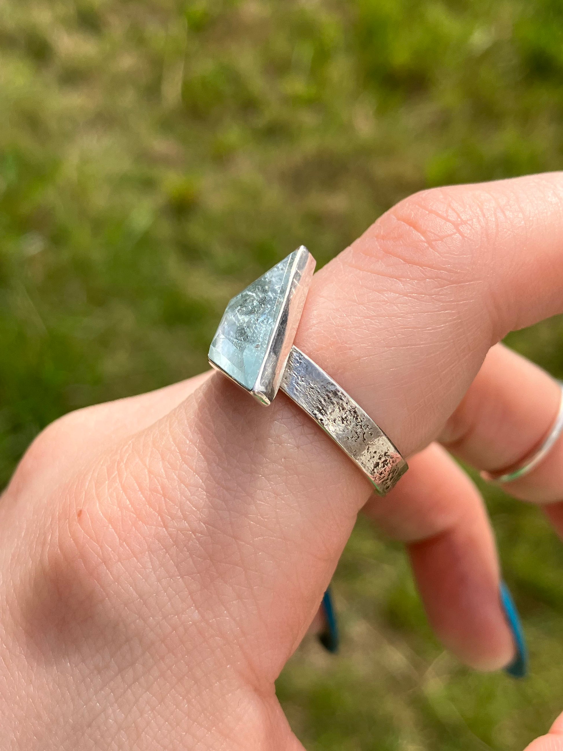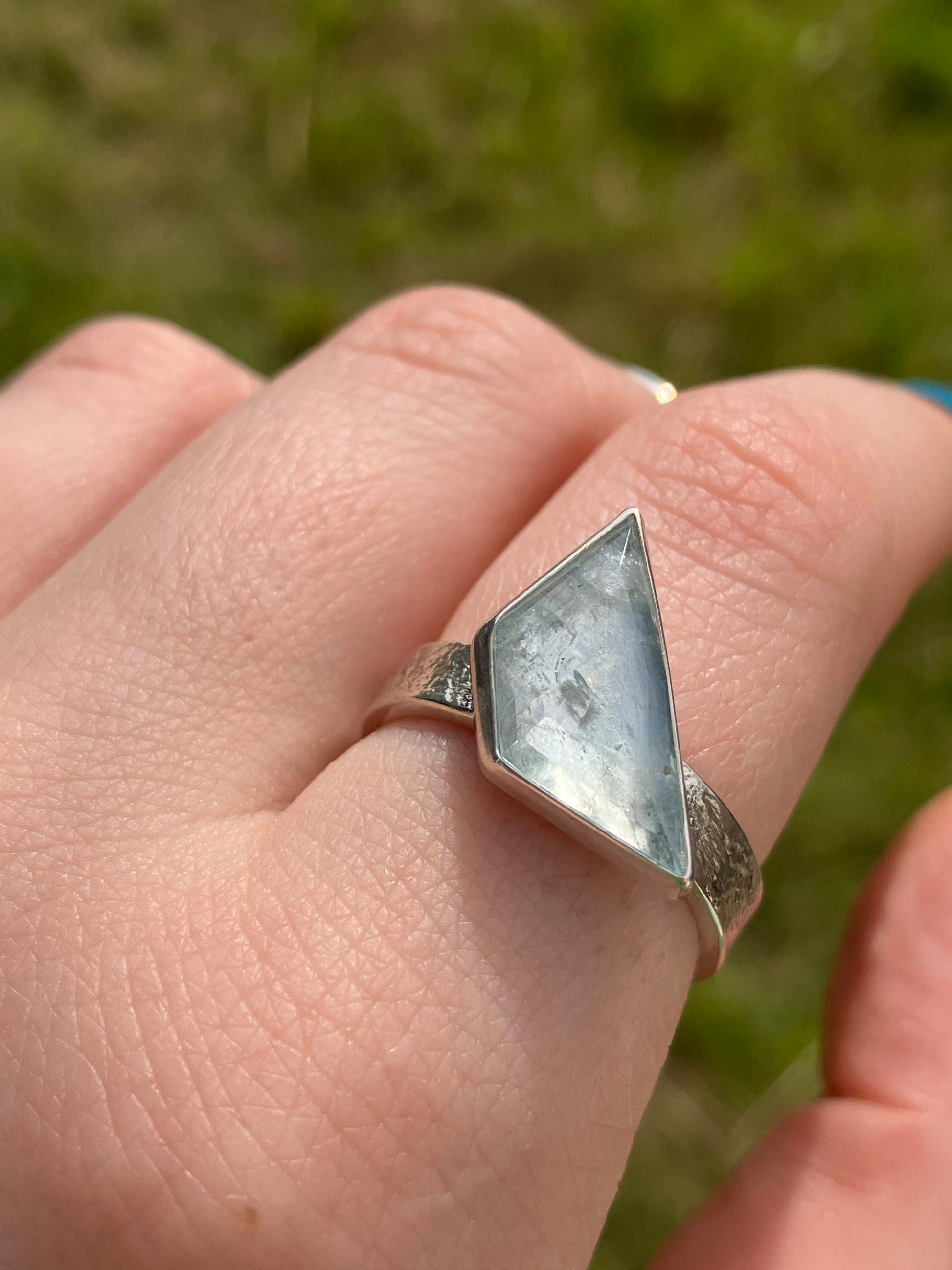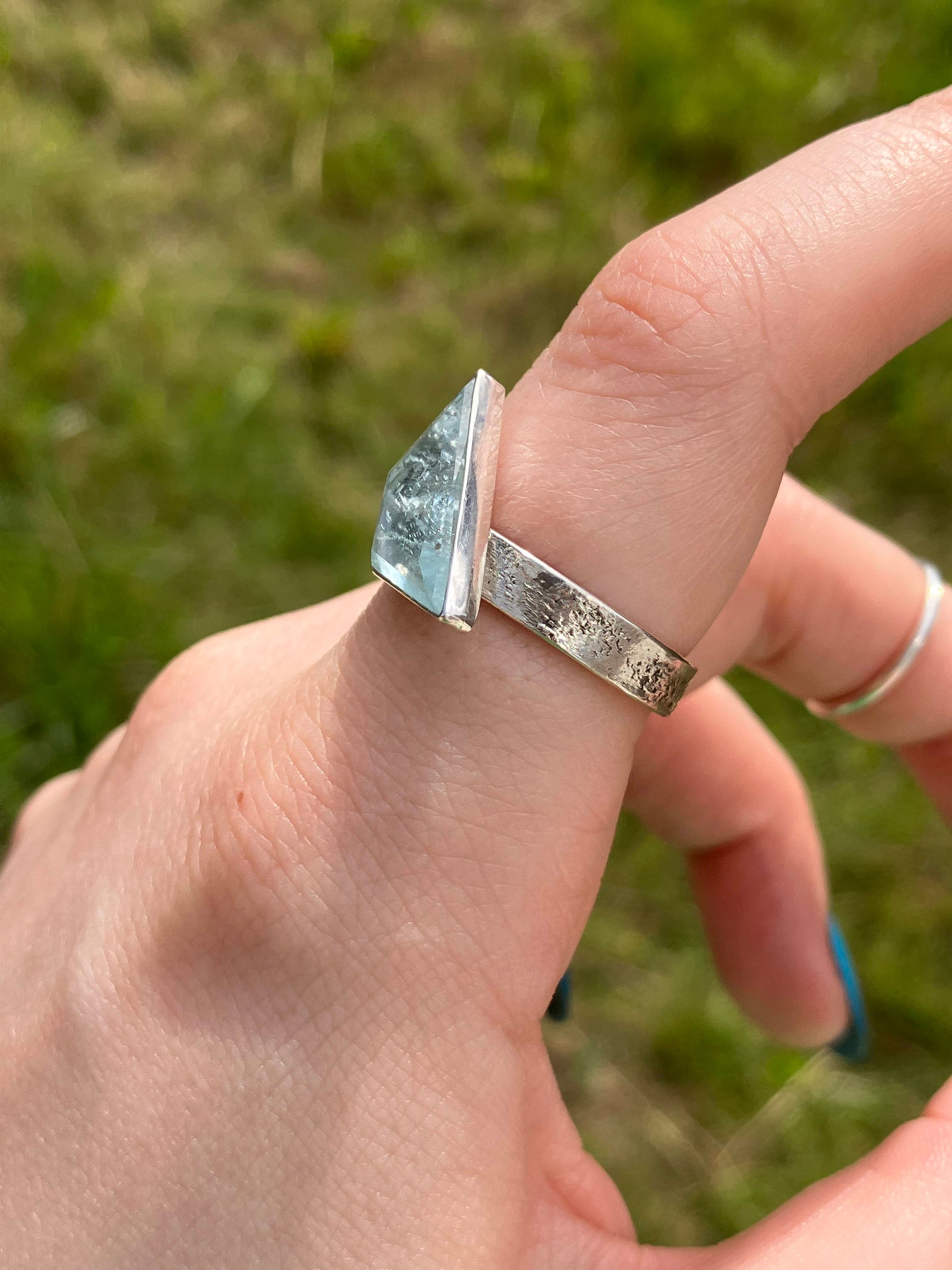 Aquamarine and Sterling Silver Textured Statement Ring - UK Size Q1/2 / US Size 8.5