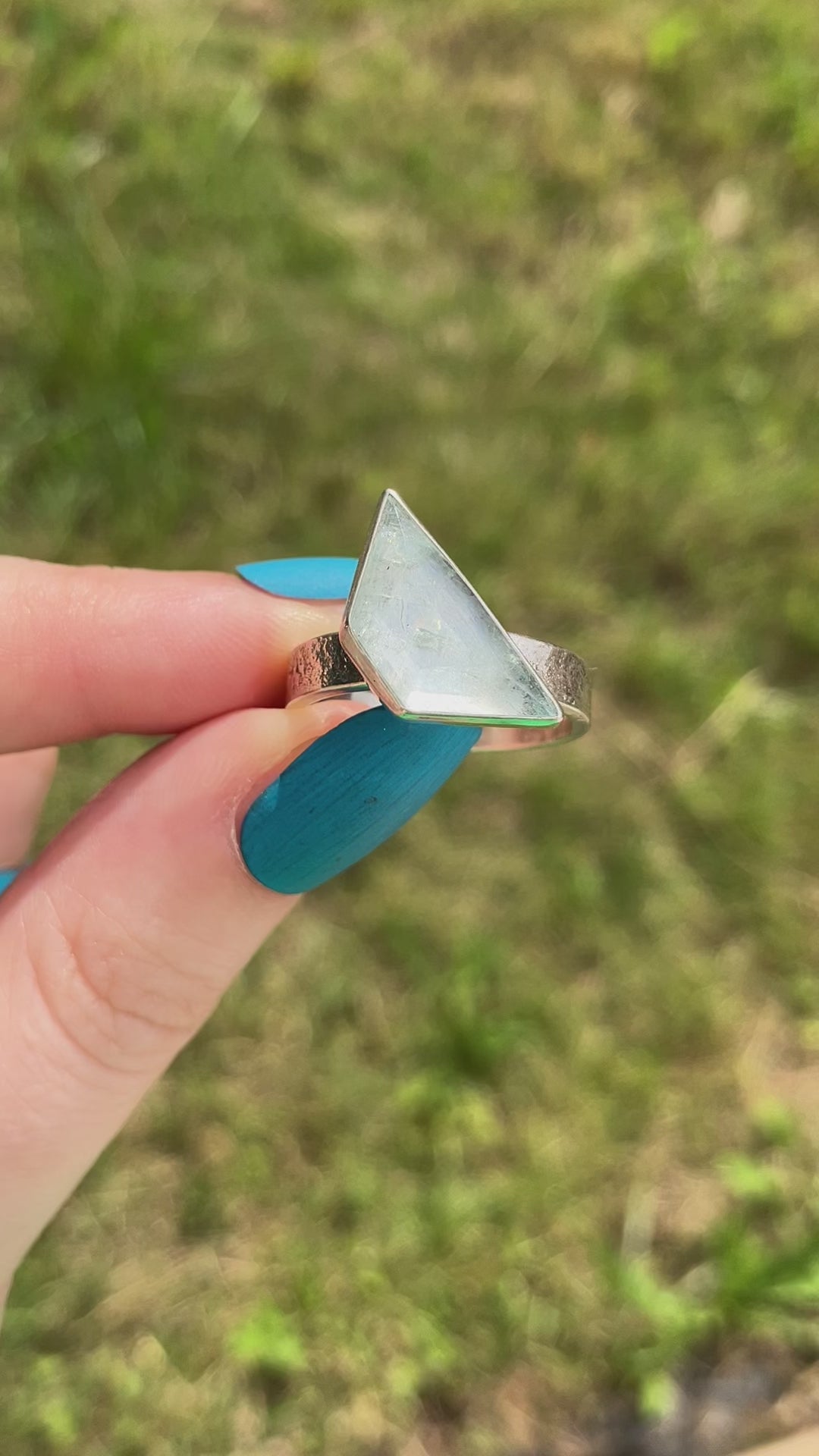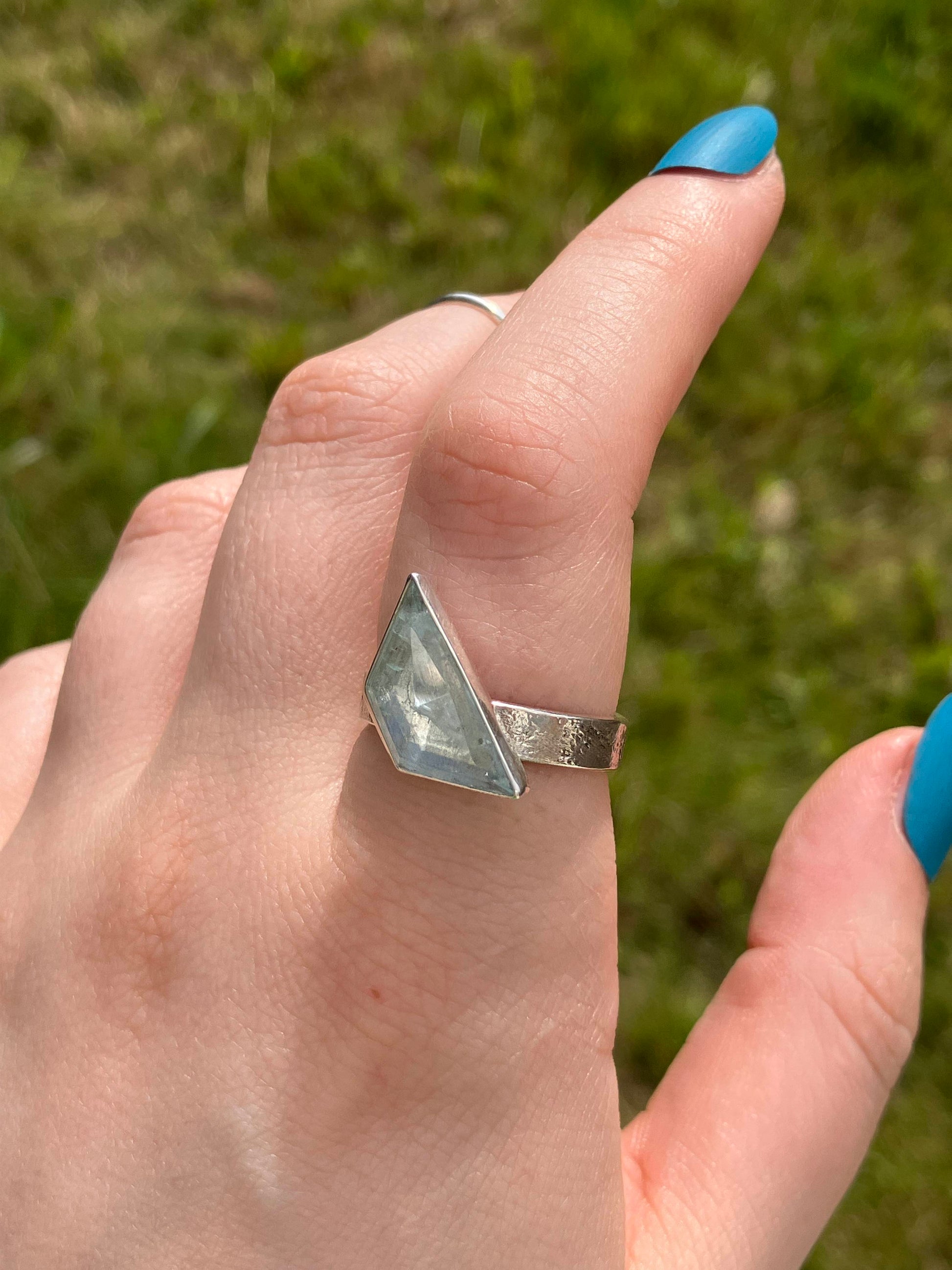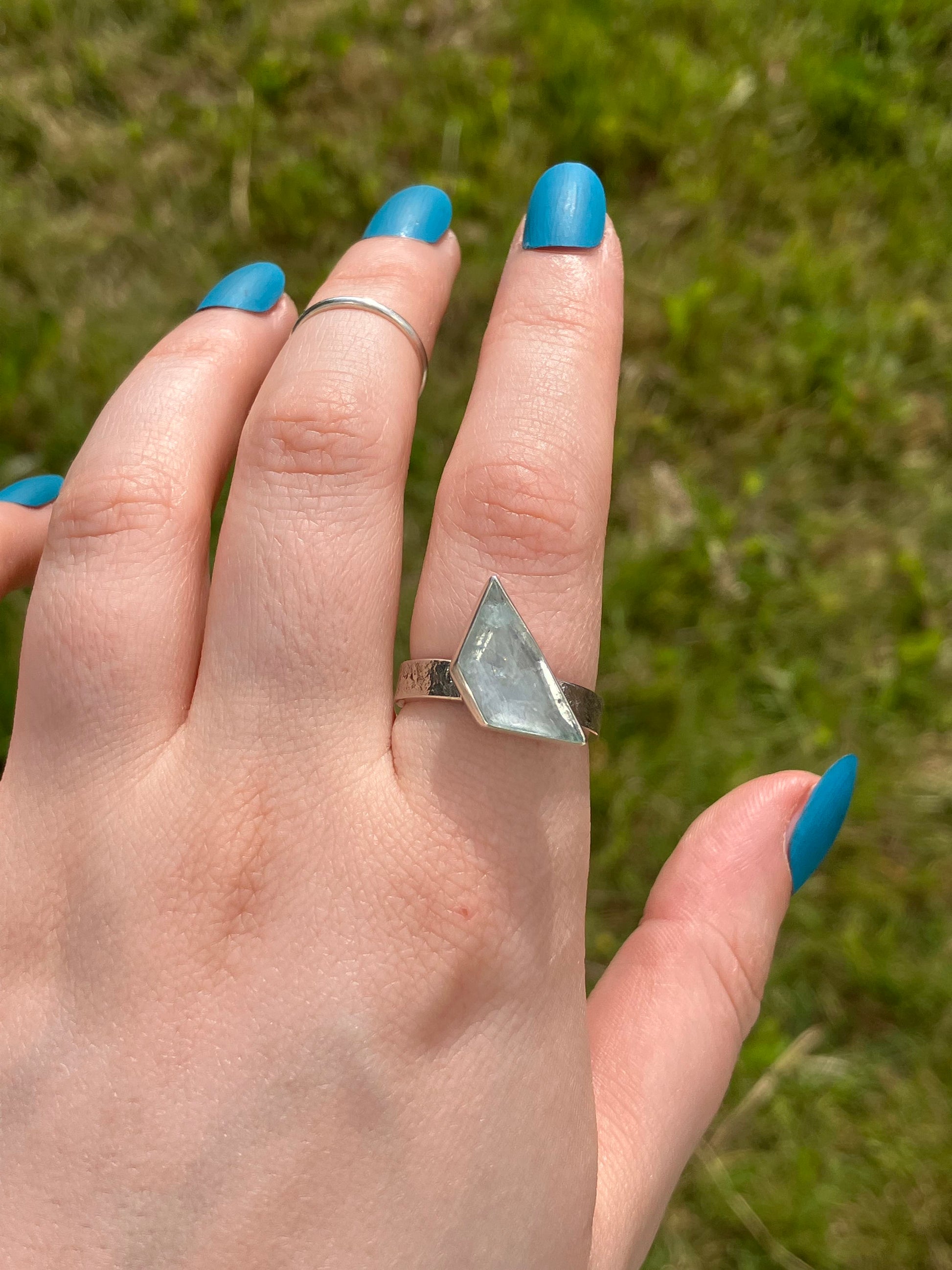 Aquamarine and Sterling Silver Textured Statement Ring - UK Size Q1/2 / US Size 8.5