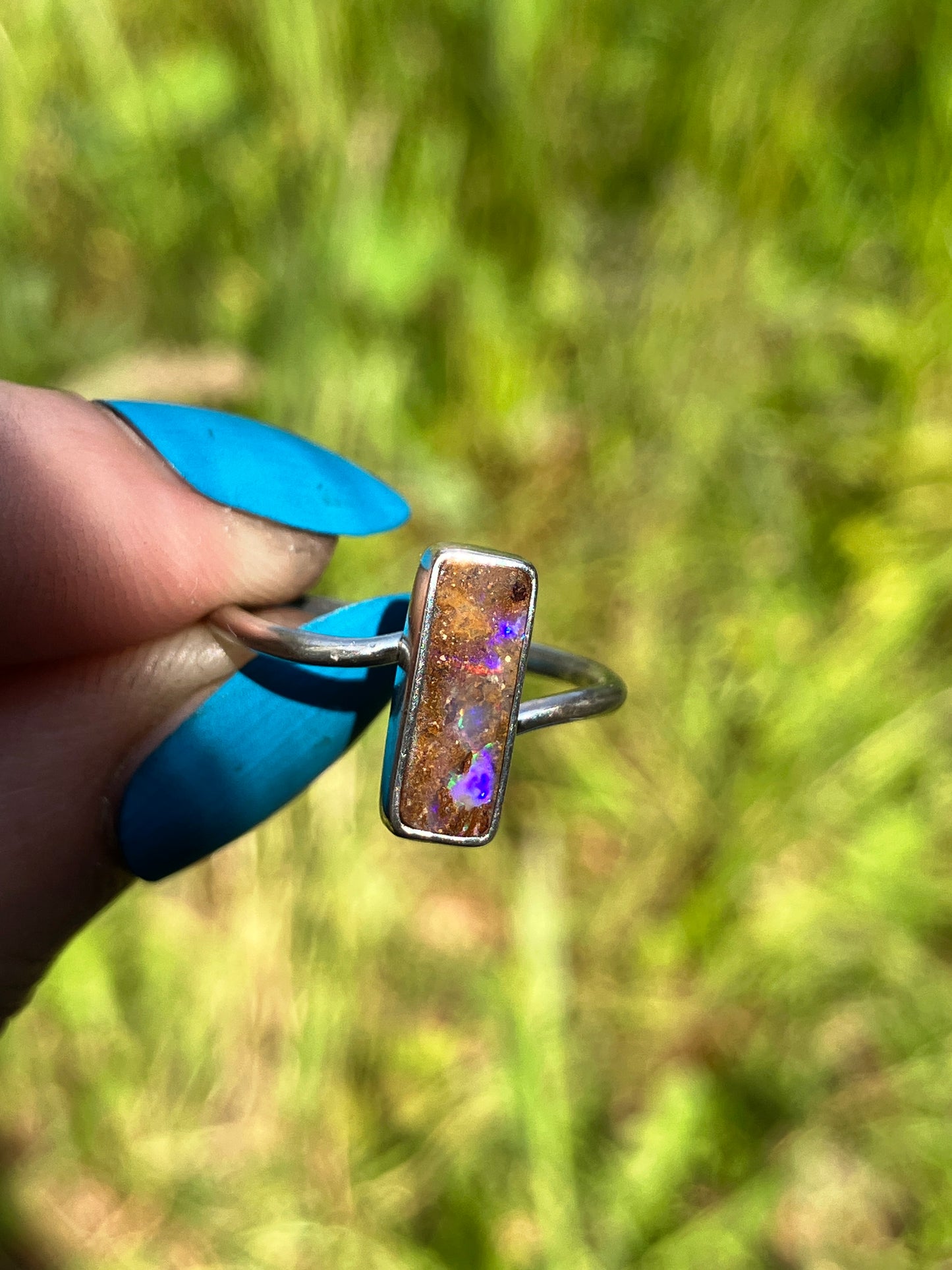 Australian Boulder Opal and Sterling Silver Ring - UK Size M