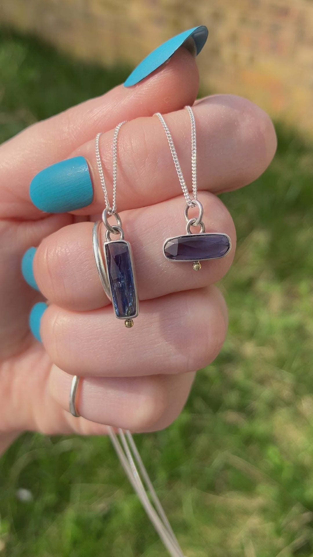 Blue Kyanite and Sterling Silver Pendant Necklaces with 18ct Gold Granules on Sterling Silver Chains