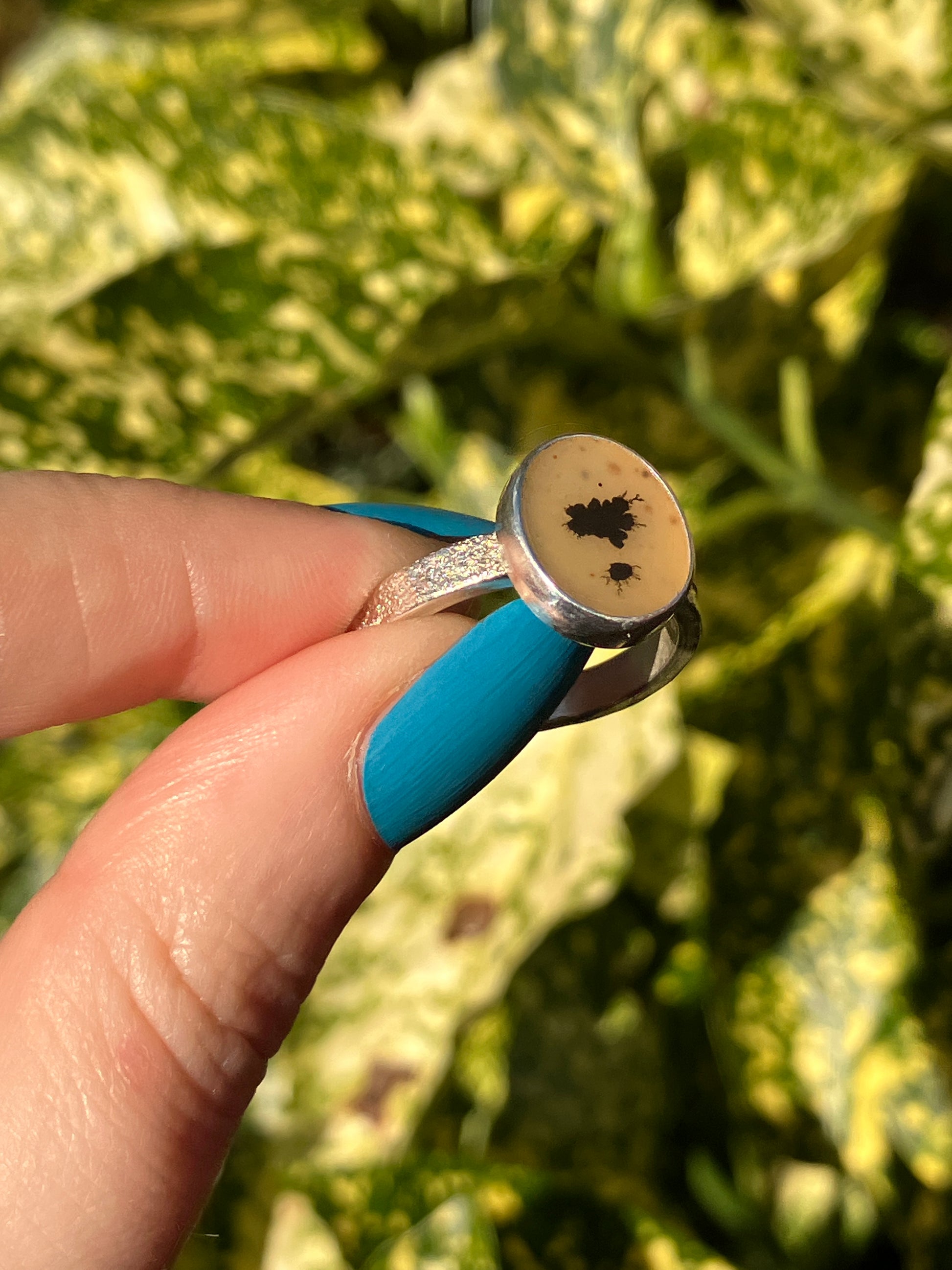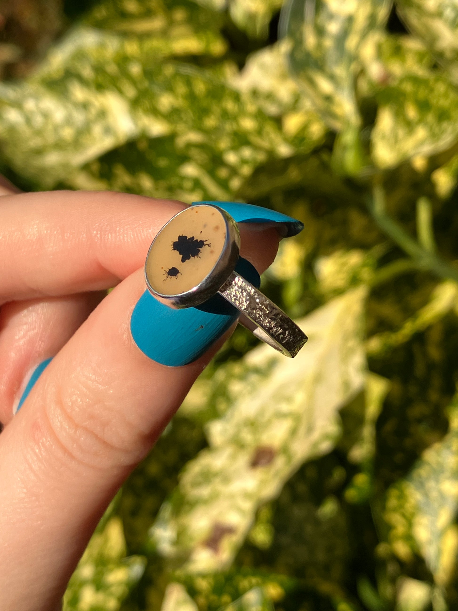 Dendritic Agate and Sterling Silver Textured Statement Ring - UK Size O/US Size 7.5