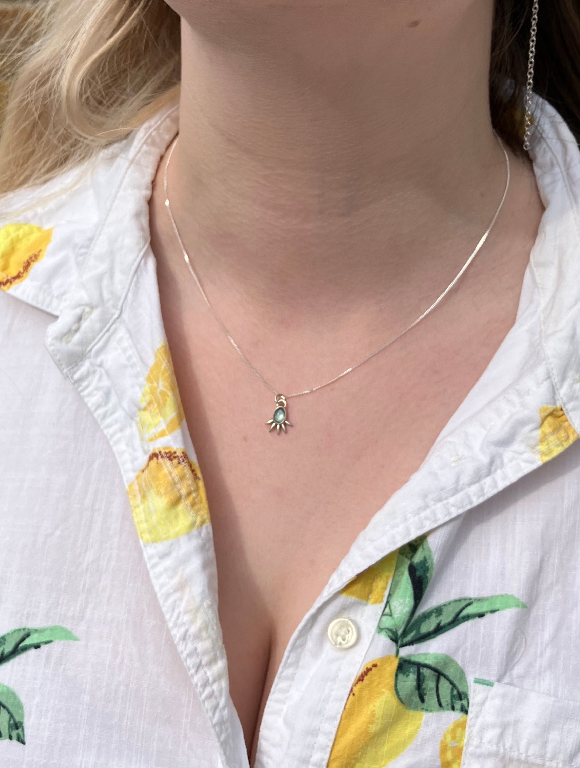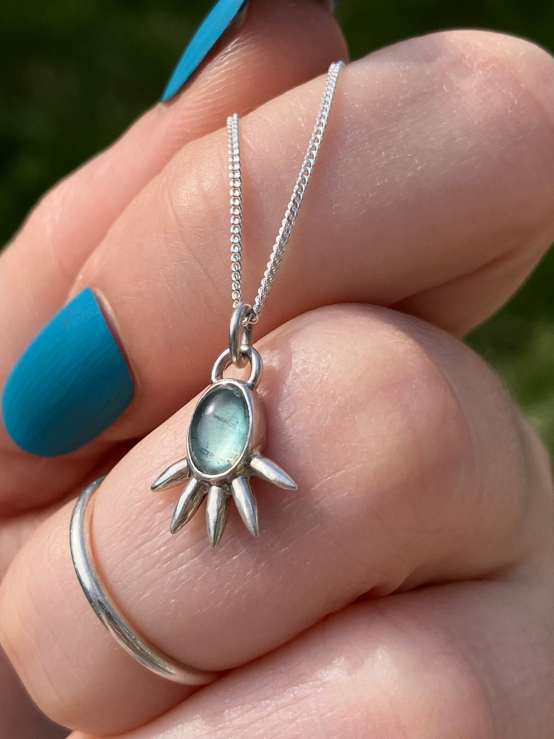 Fluorite and Sterling Silver Spiked Pendant Necklace