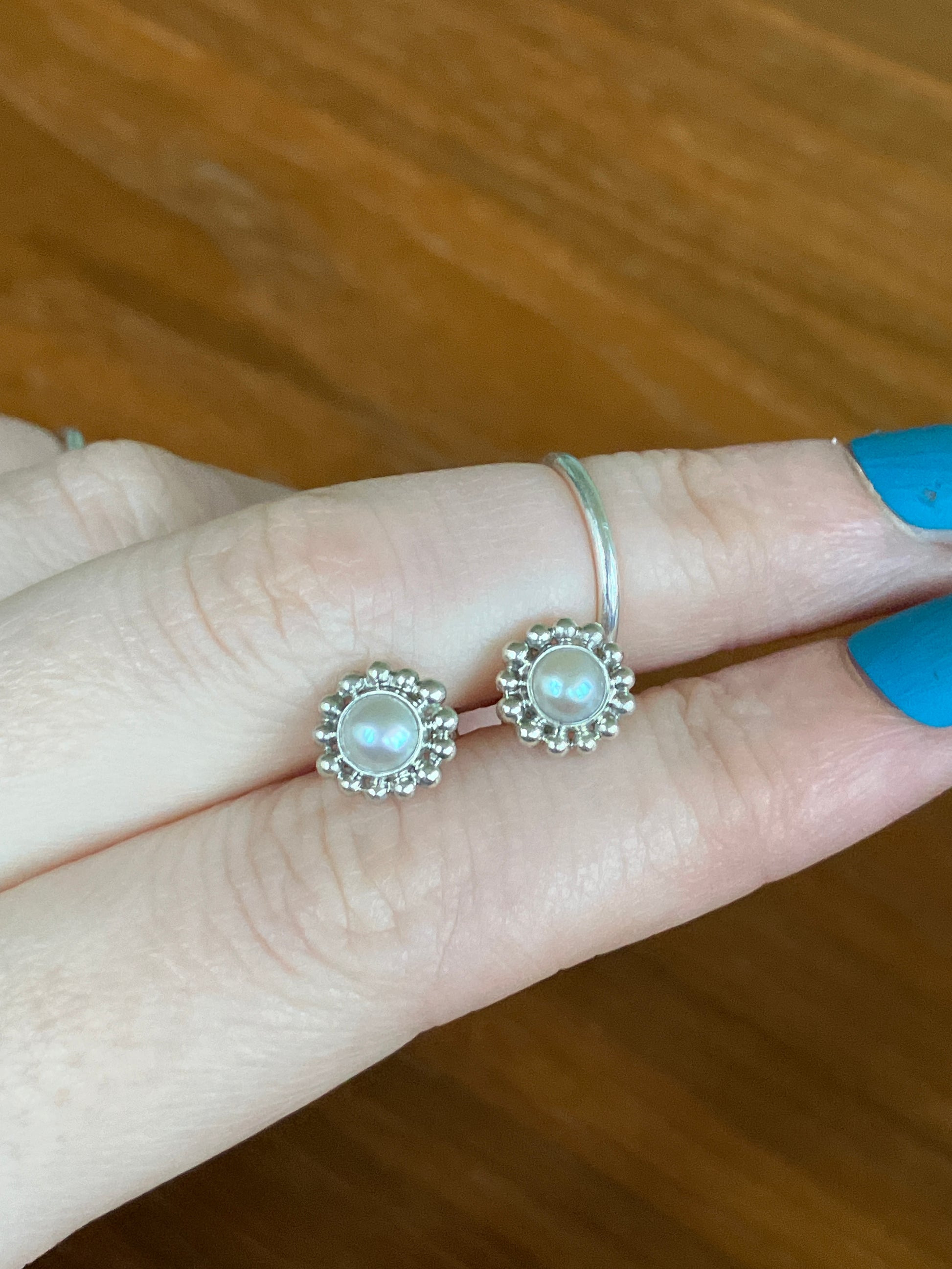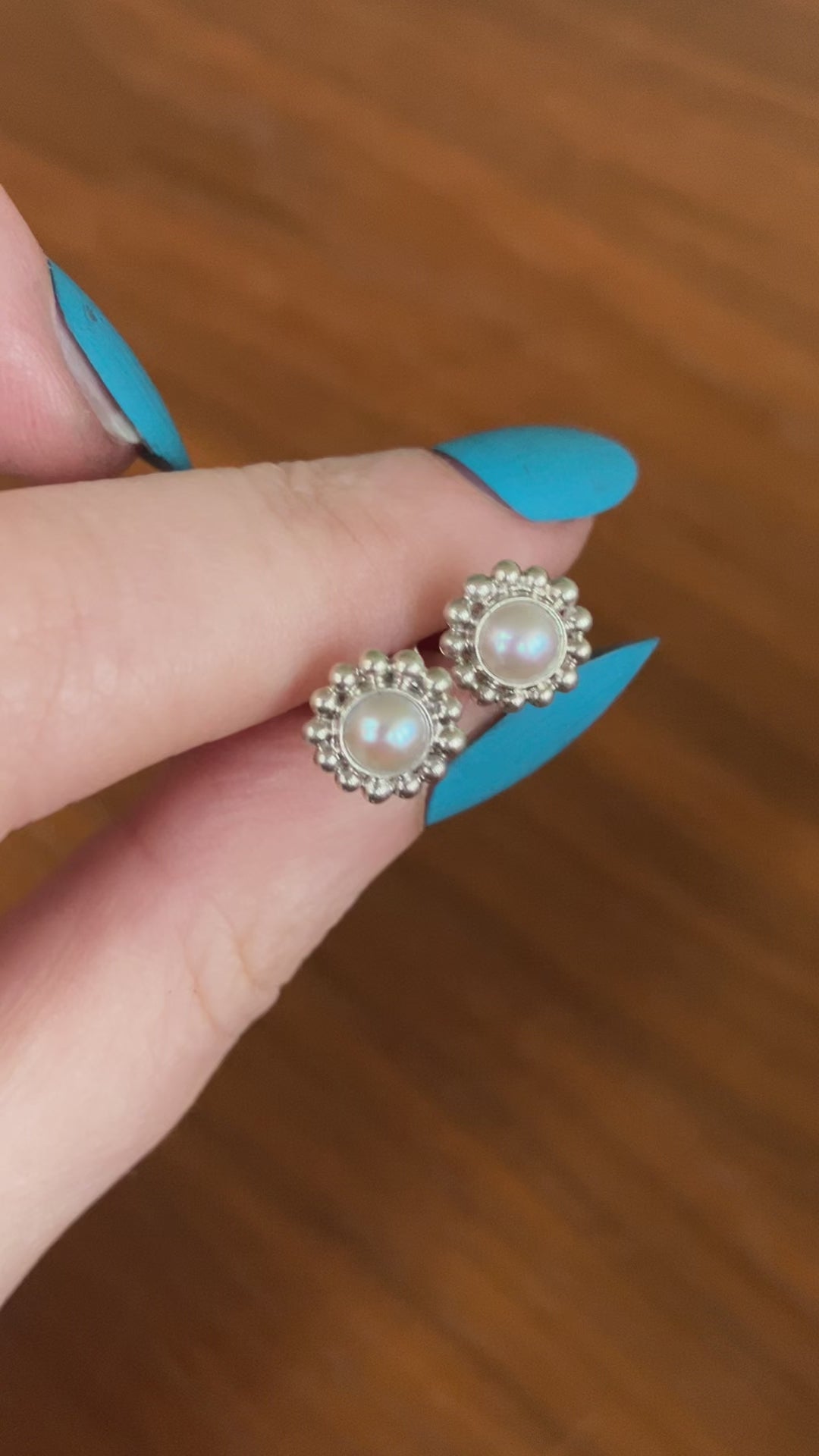 Freshwater Pearl and Sterling Silver Stud Earrings with Granulation Detail