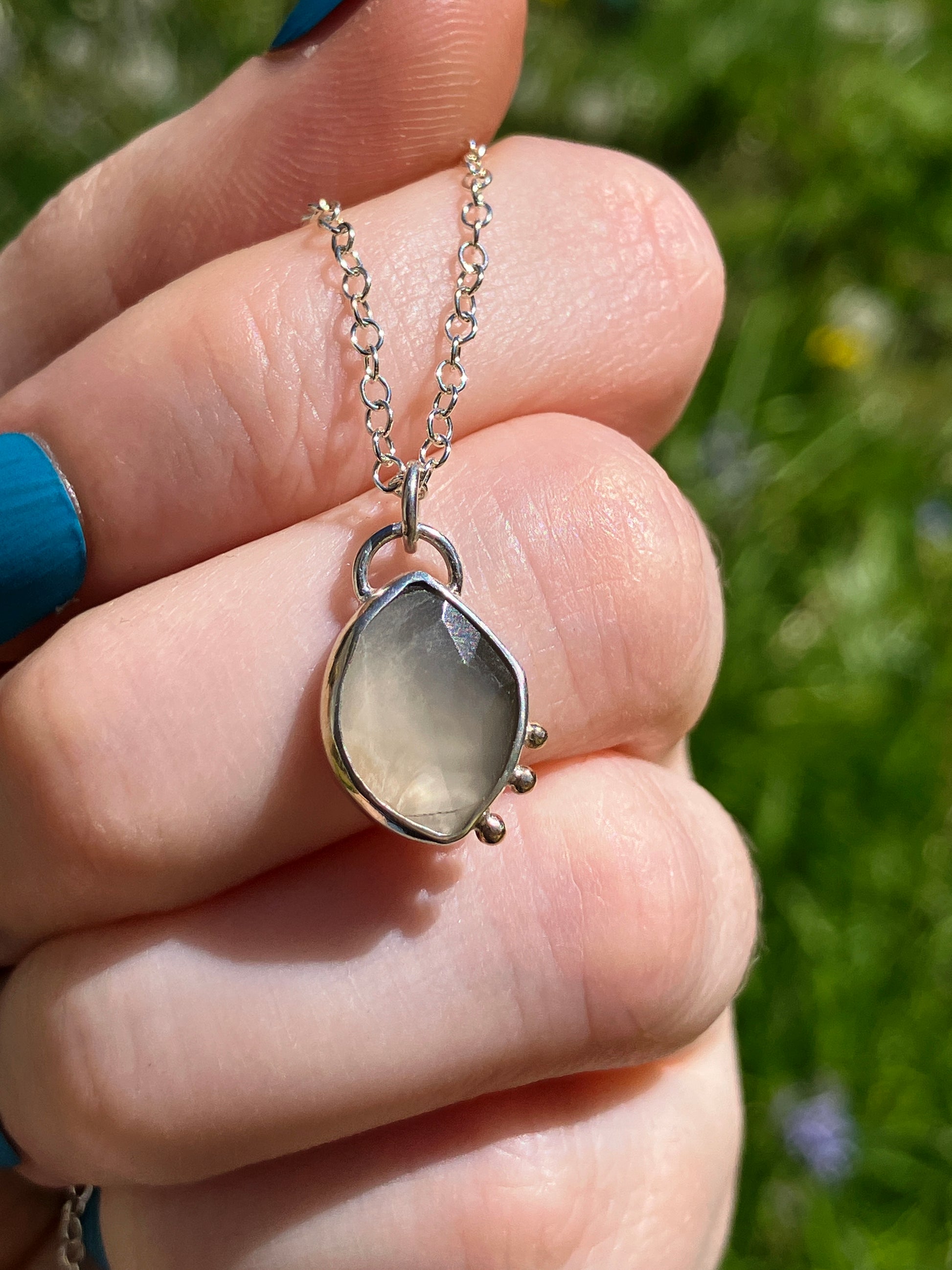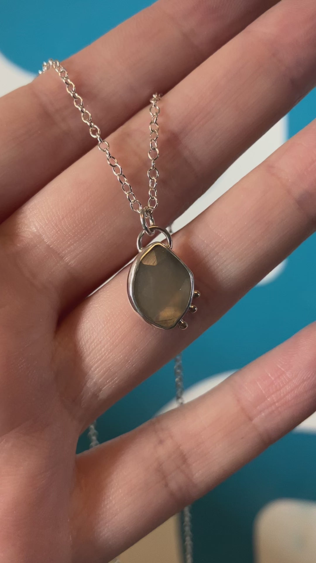 Grey Moonstone, 9ct Gold Granules and Sterling Silver Pendant Necklace