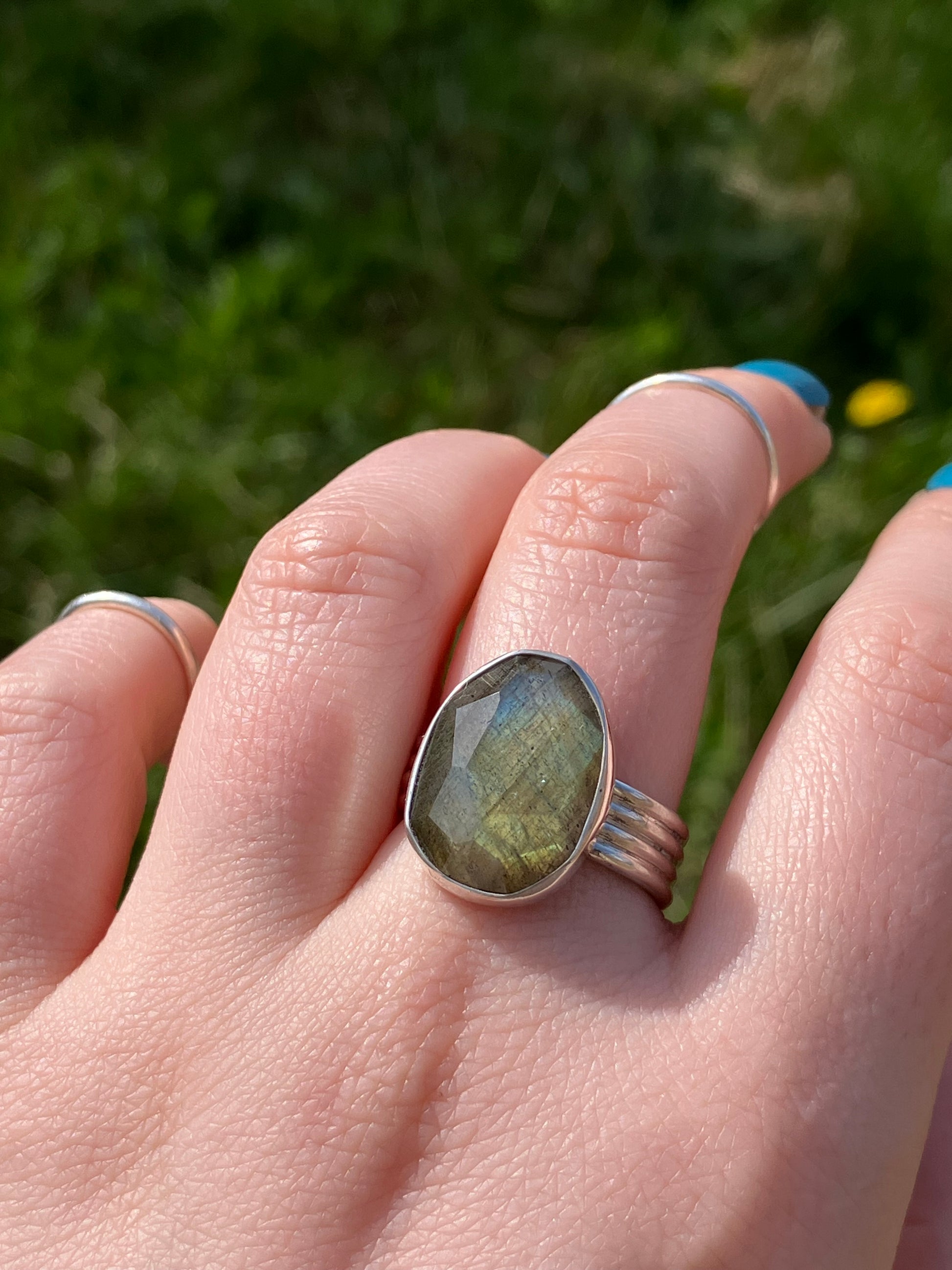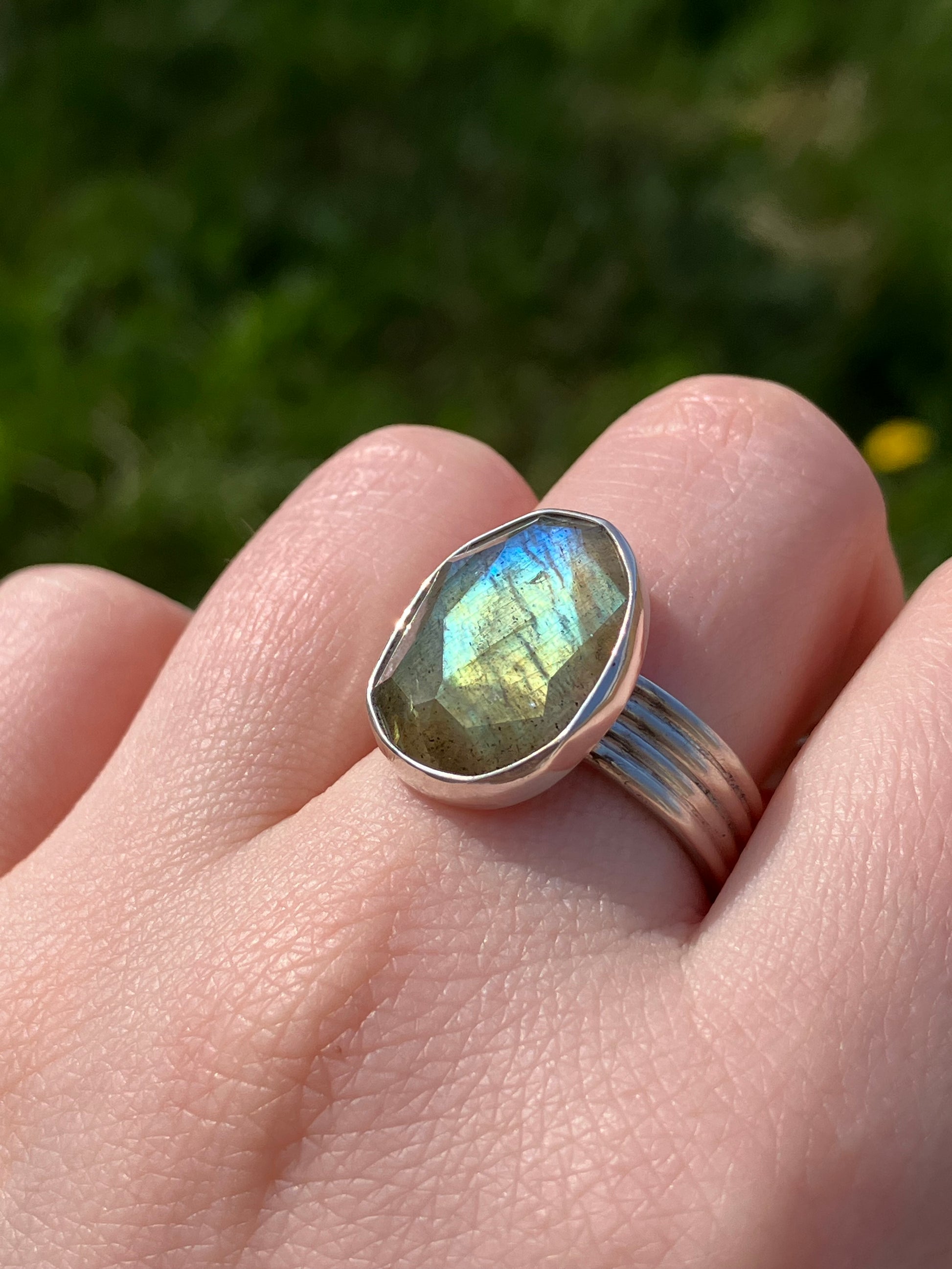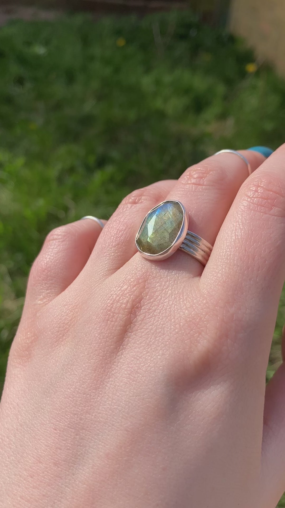 Labradorite and Sterling Silver Statement Ring - UK Size P/US Size 8