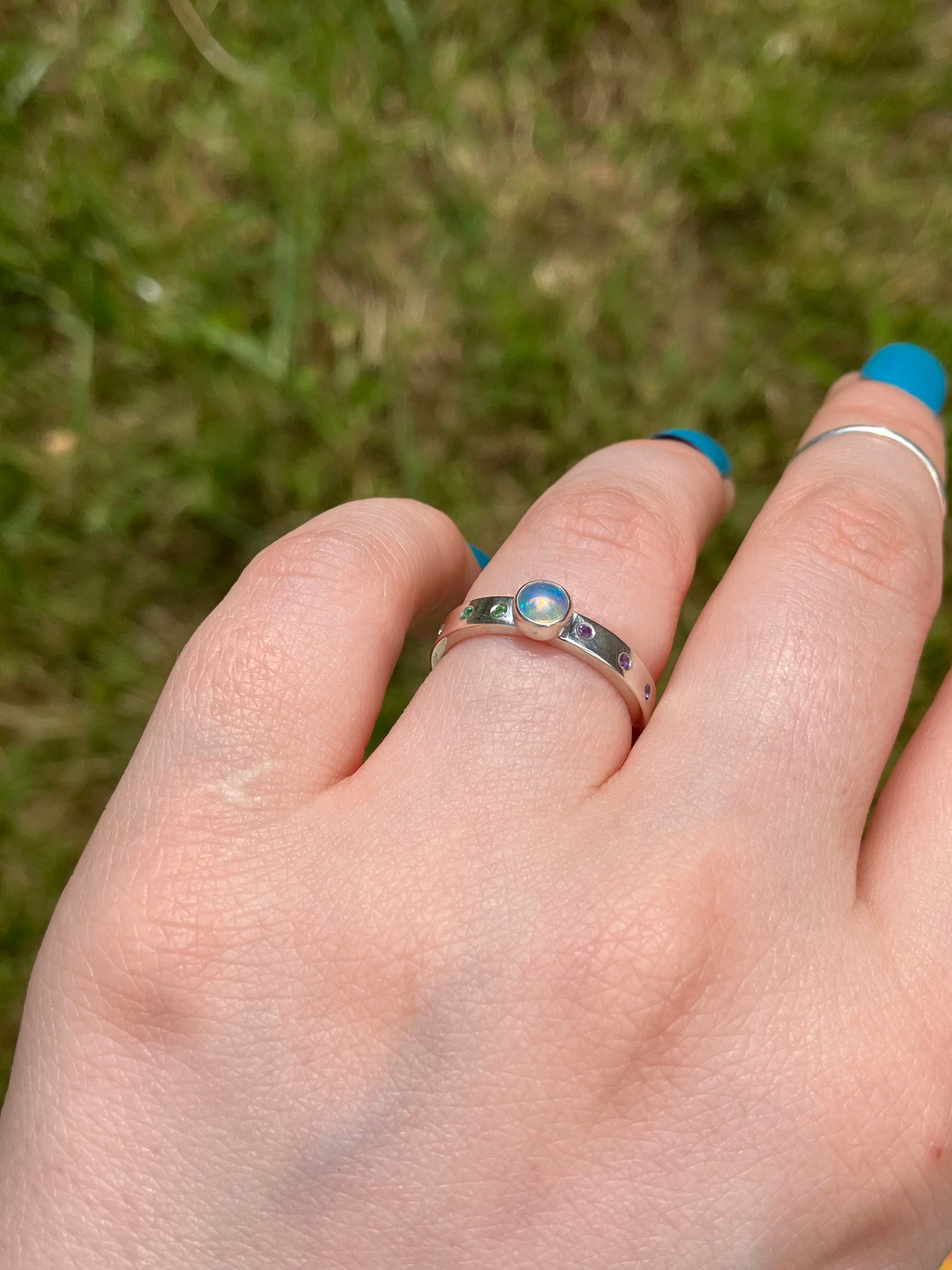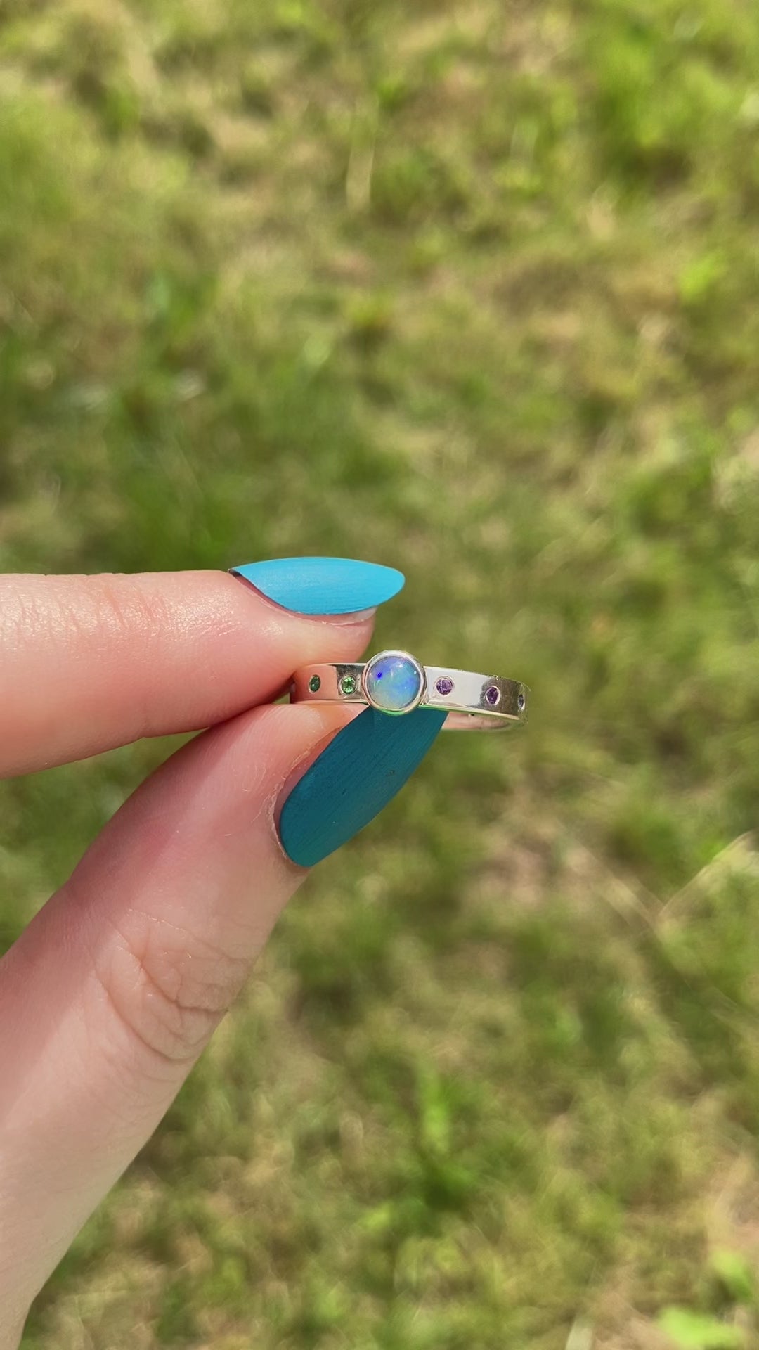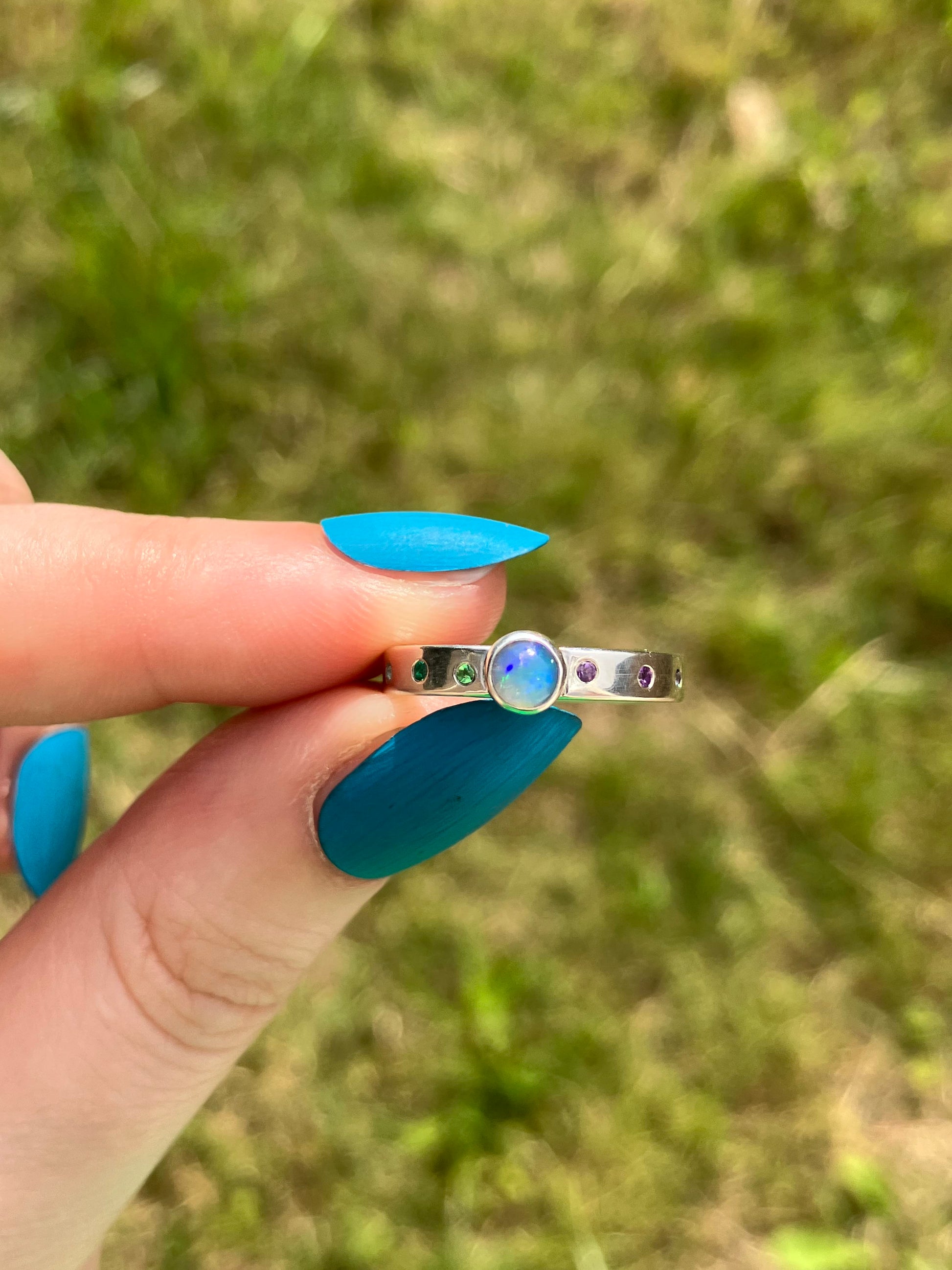Opal, Peridot, Emerald, Sapphire, Tsavorite, Topaz, Sapphire, Alexandrite, Iolite, Amethyst and Sterling Silver Ring