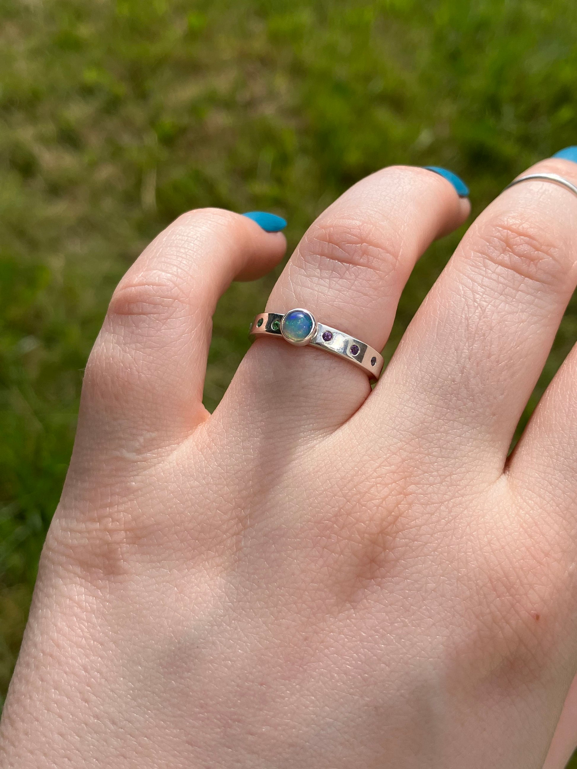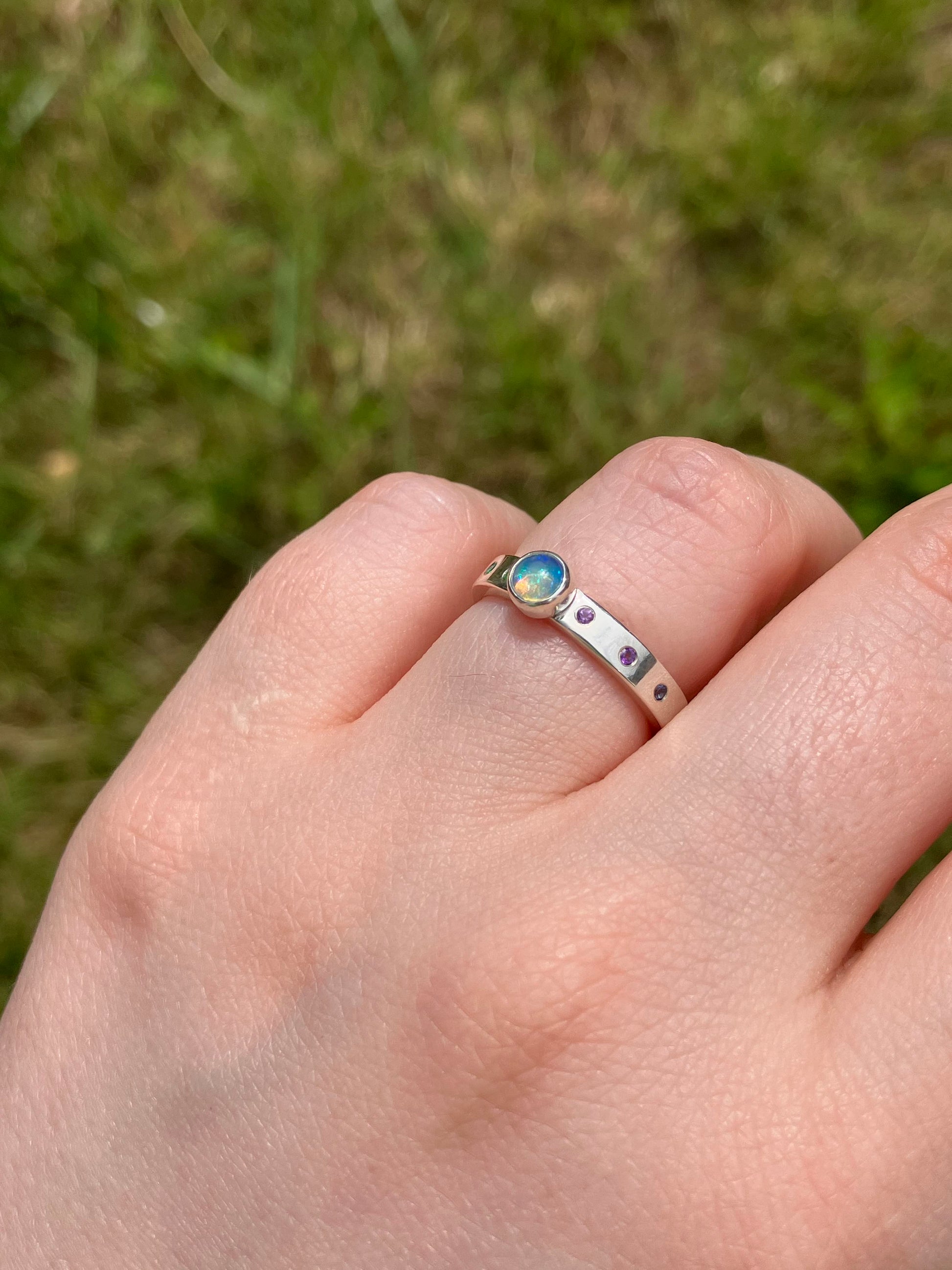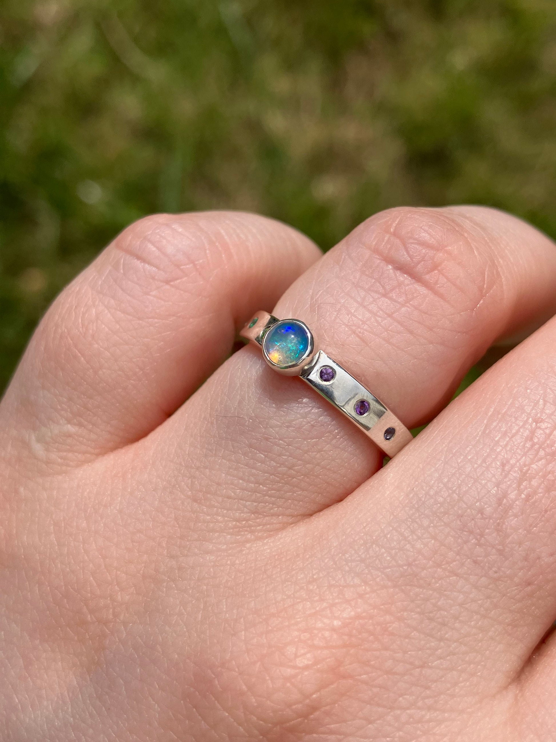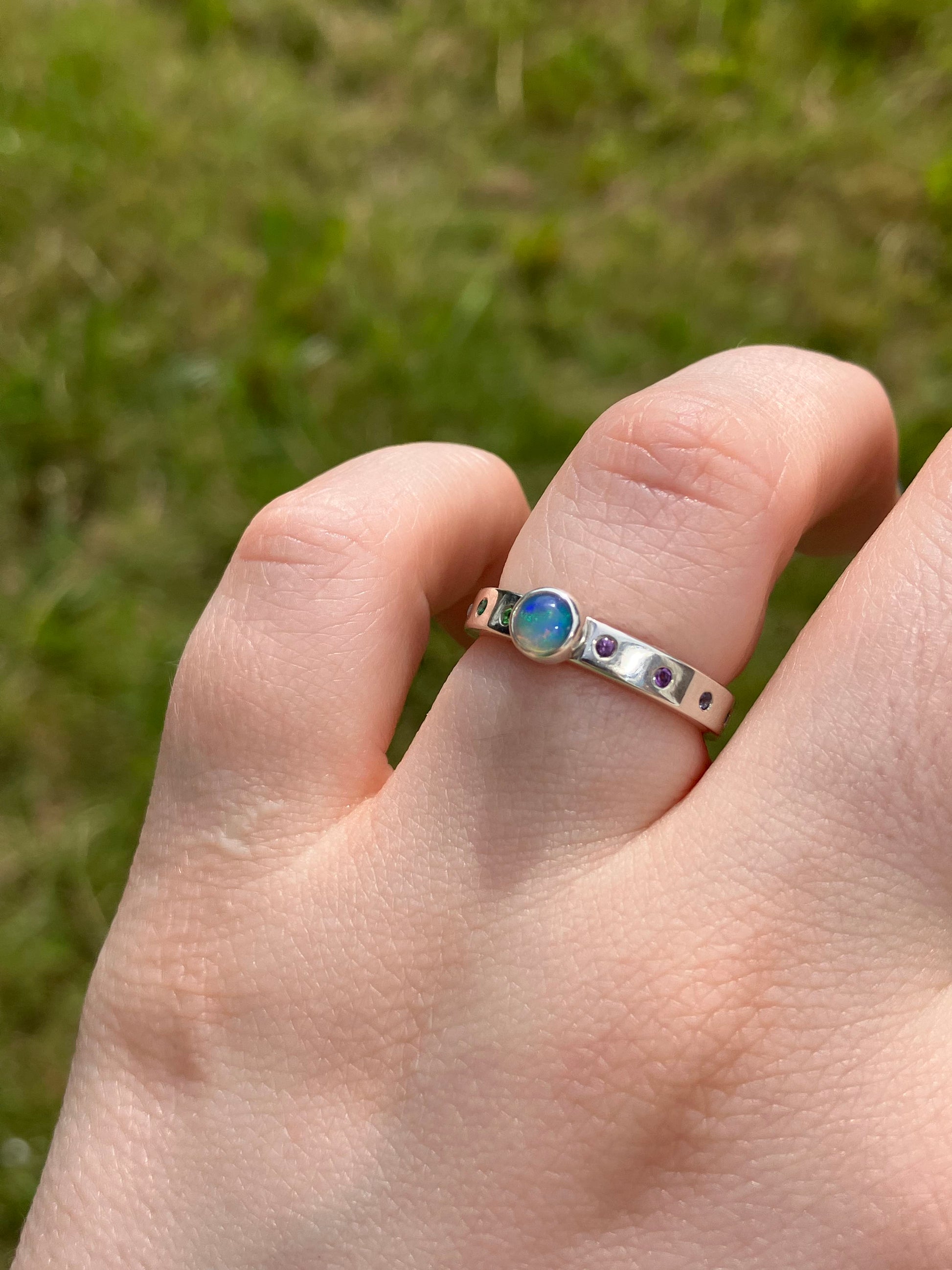 Opal, Peridot, Emerald, Sapphire, Tsavorite, Topaz, Sapphire, Alexandrite, Iolite, Amethyst and Sterling Silver Ring